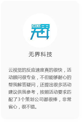 活動服務(wù)商與客戶口碑掛鉤,更強的服務(wù)驅(qū)動力。